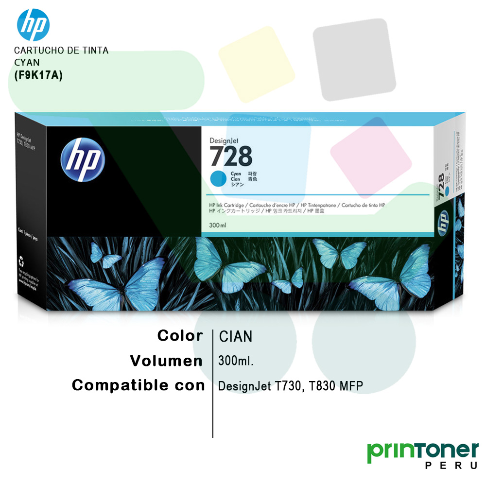 🖨️ CARTUCHO DE TINTA HP 728 CYAN (F9K17A) 300ML.