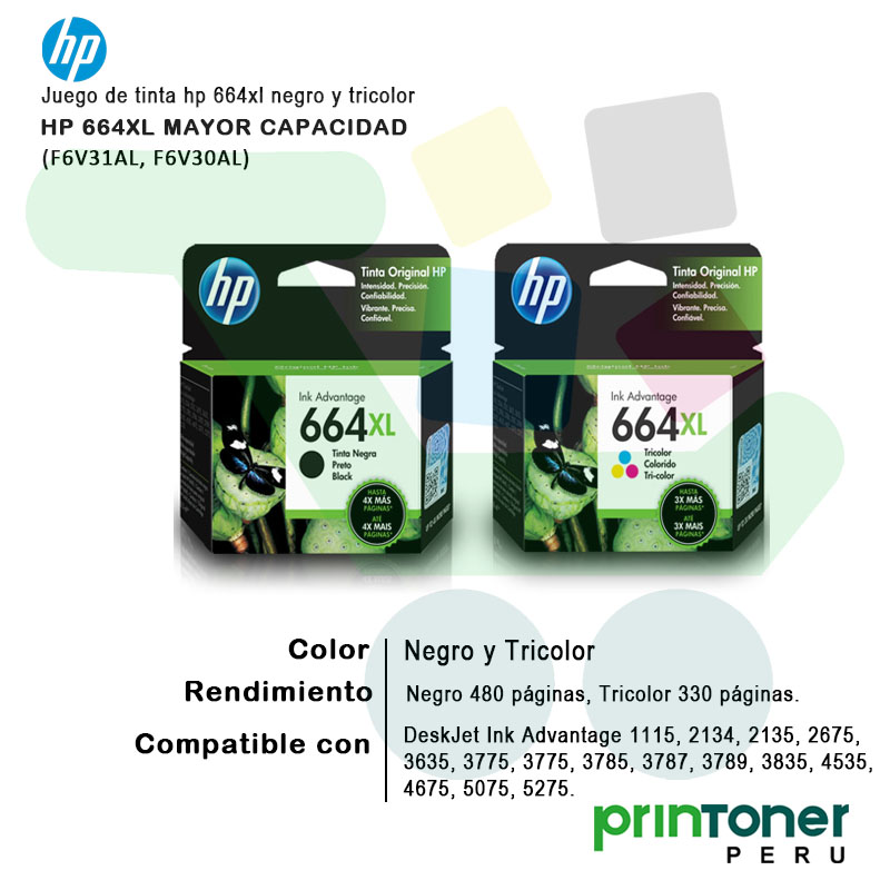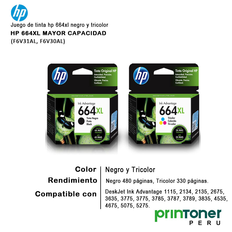 El juego de tinta HP 664XL Negro y Tricolor original ofrece impresiones de alta calidad con colores intensos y texto nítido. Su capacidad XL brinda un mayor rendimiento en comparación con los cartuchos estándar, ideal para usuarios que buscan economía y productividad. Compatible con una amplia gama de impresoras HP DeskJet Ink Advantage.