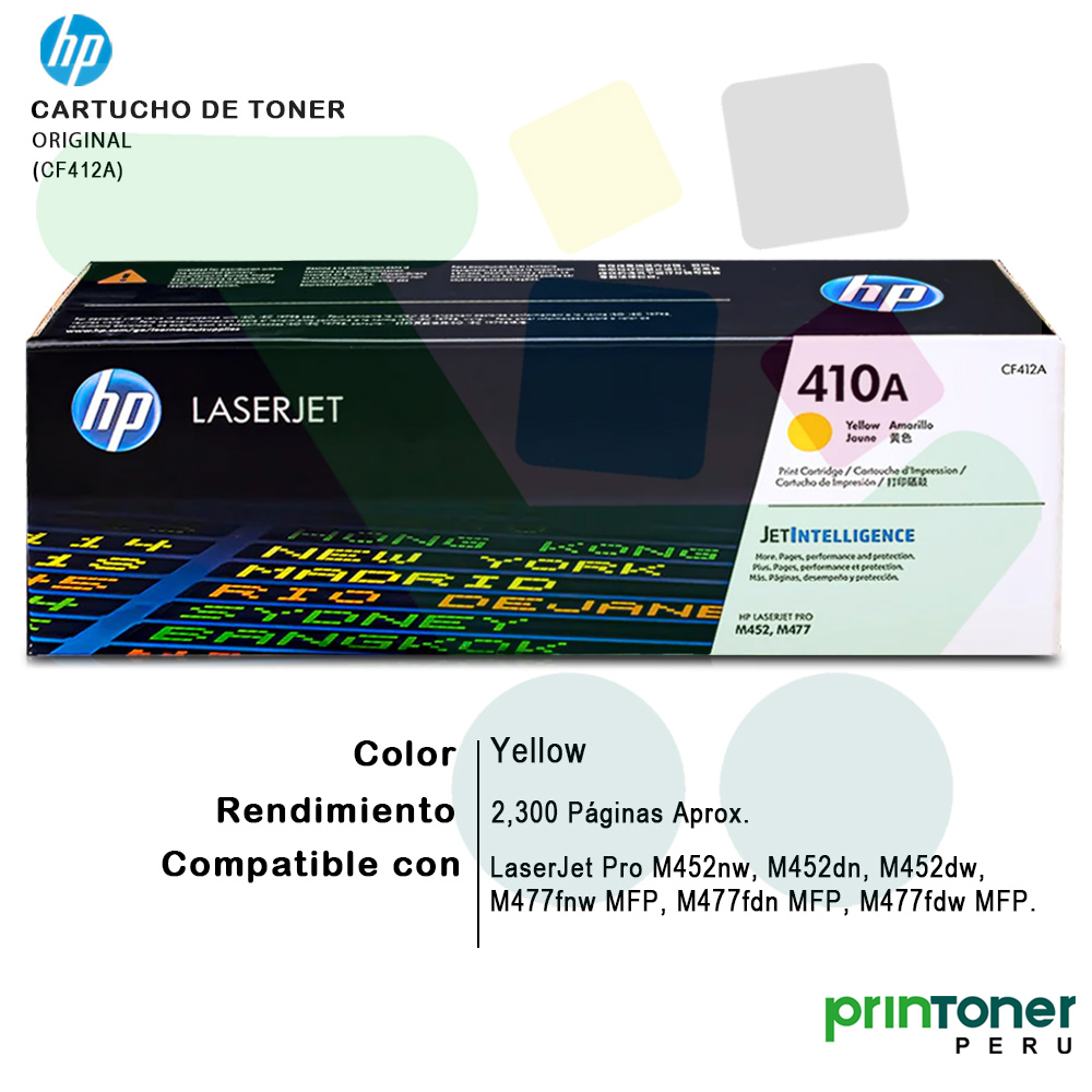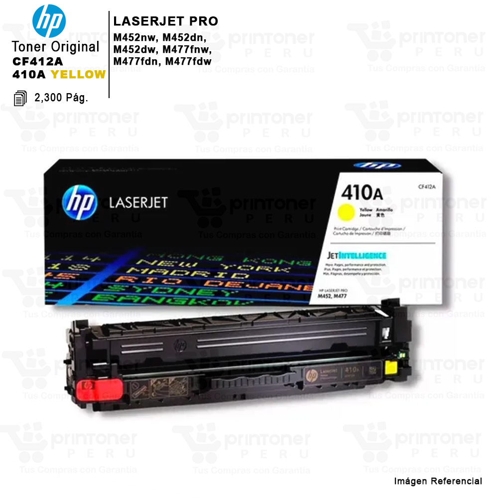 Tóner HP 410A Yellow Original (CF412A) | Para HP Color LaserJet Pro M452 / M477 | Rendimiento 2,300 Páginas